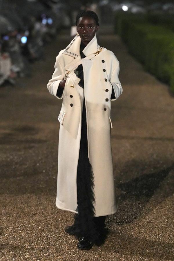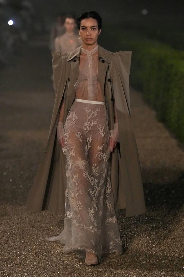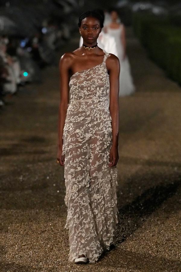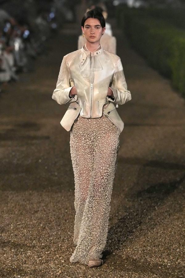 For this collection, Grazia combined elements of ancient Roman grandeur with contemporary femininity, honoring both the timeless essence of the eternal city and her Italian heritage. The collection showcased this fusion, featuring silhouettes that echoed goddess-like drapery and Renaissance tailoring, while opulent embroidery and striking fabrics highlighted Chiuri’s continuous engagement with craftsmanship and couture traditions.