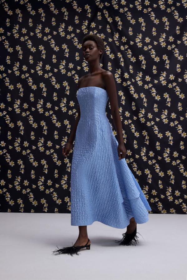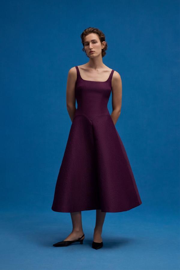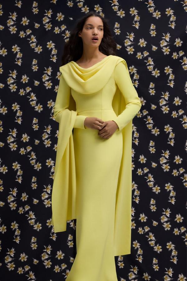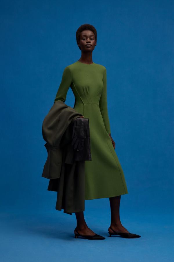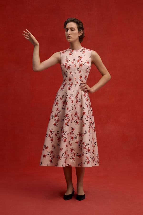 The Emilia Wickstead Resort 2026 collection showcases an elegant array of garments inspired by mid-20th century cinematic styles, emphasizing refined tailoring and a unique color palette. The collection conveys a cohesive narrative through its selection of fabrics, silhouettes, and a focus on practical luxury.