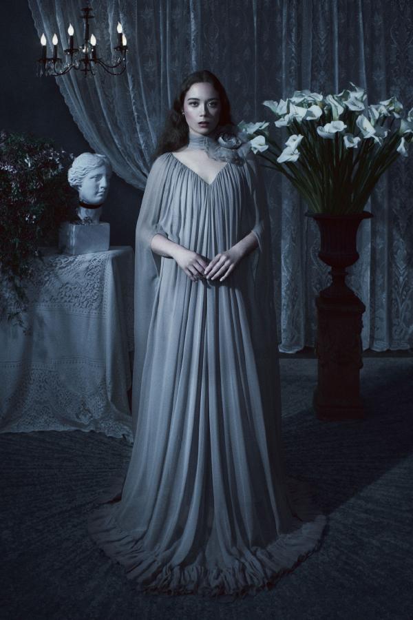 The collection is rooted in a unique lavender dove gray, chosen to create a gothic and moody atmosphere. This color serves as a foundation for a moonlit palette, exploring how colors shift under ethereal lighting.