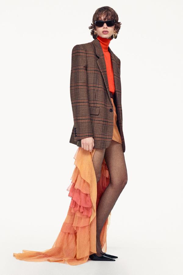 The Saint Laurent Pre-Fall 2025 collection, designed by Anthony Vaccarello, showcases a striking blend of rich colors and bold shapes, embodying the brand’s signature aesthetic. A diverse selection of materials, including sumptuous wools, silks, and leather, highlights the craftsmanship and attention to detail that Saint Laurent is known for.